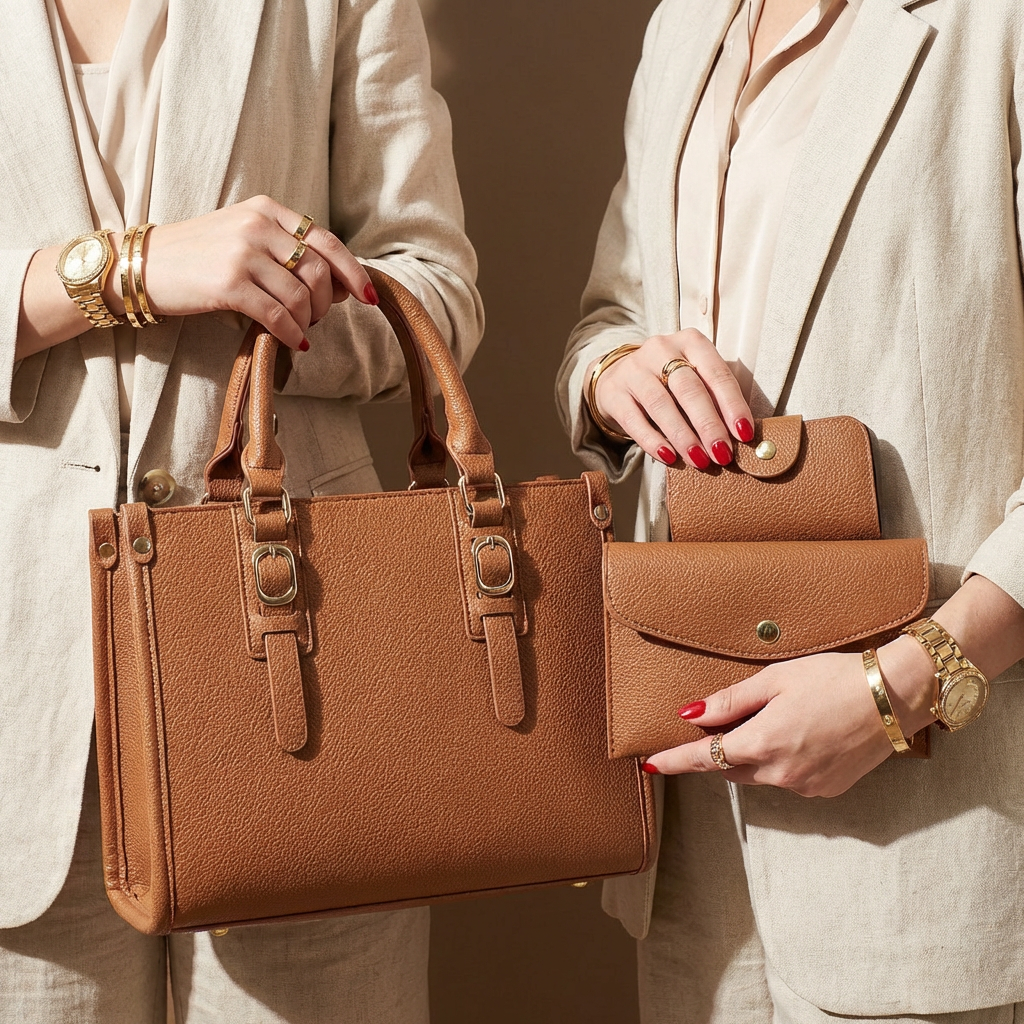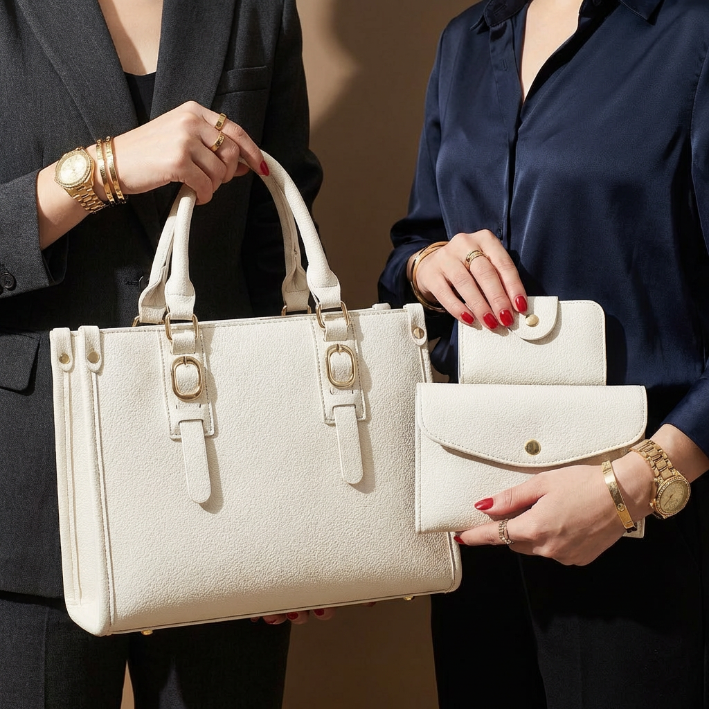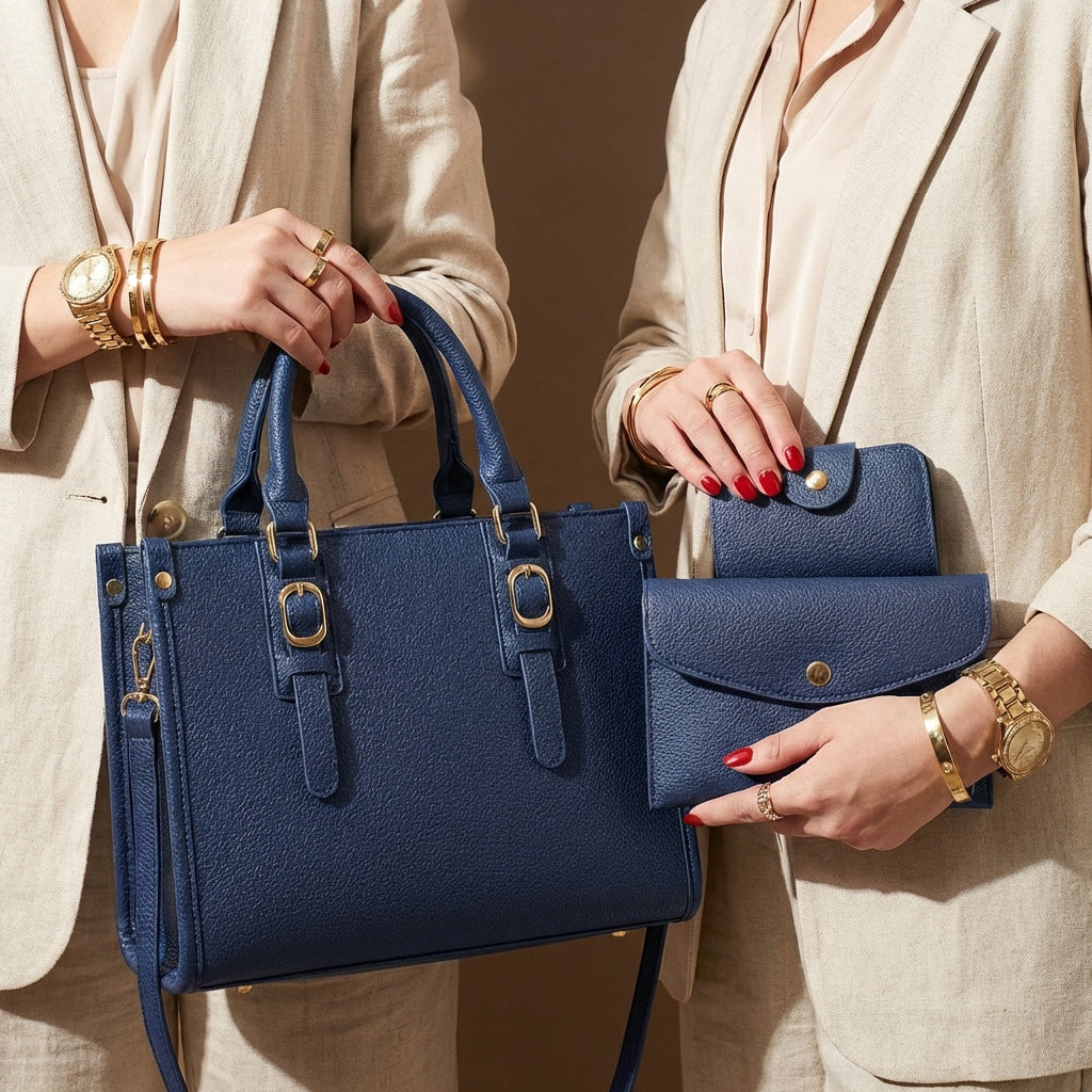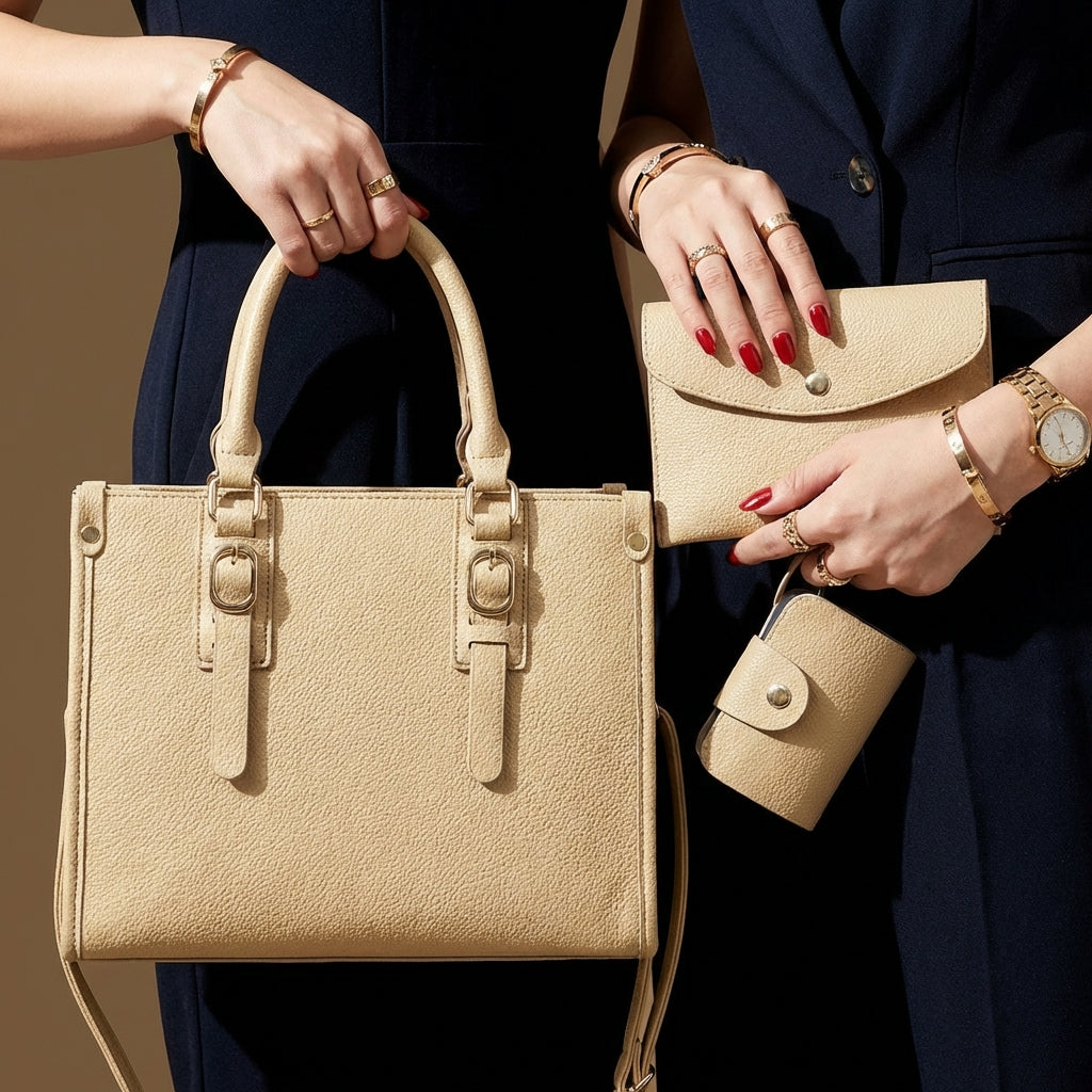 Designed for modern routines, this three-piece bag set delivers style and versatility in one coordinated look. The structured tote, shoulder bag, and wallet work together to keep essentials organized with a contemporary edge.